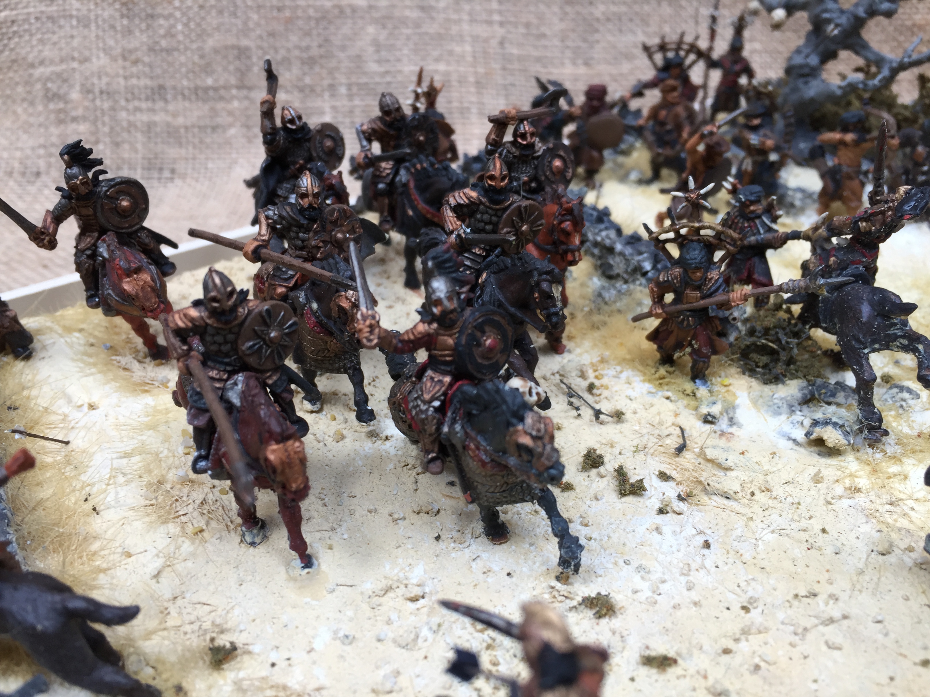 So much activity. Arrows flying everywhere, clashing steel, thundering hooves, the glint of sun on shield and helm, the tang of fear, blood and death, screaming … then in a few moments it is all over! Great diorama. I like how you’ve captured all of that activity for something that will resolve itself very quickly. A frozen moment in time.