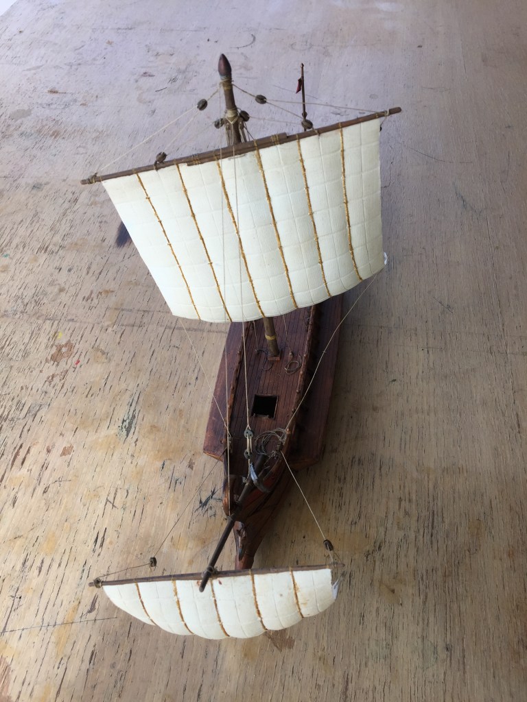 Well I have said I don’t like doing rigging before so some of you will think I have changed my mind when you see these photos. No, I haven’t, it’s just that I must be a sucker for punishment! I thought this one would be pretty simple but even the simple ones love to trip me up. You wouldn’t believe it, but I still have two more ships to build down the track, a Greek Triera and a Crusaders ship, both by Zvezda.