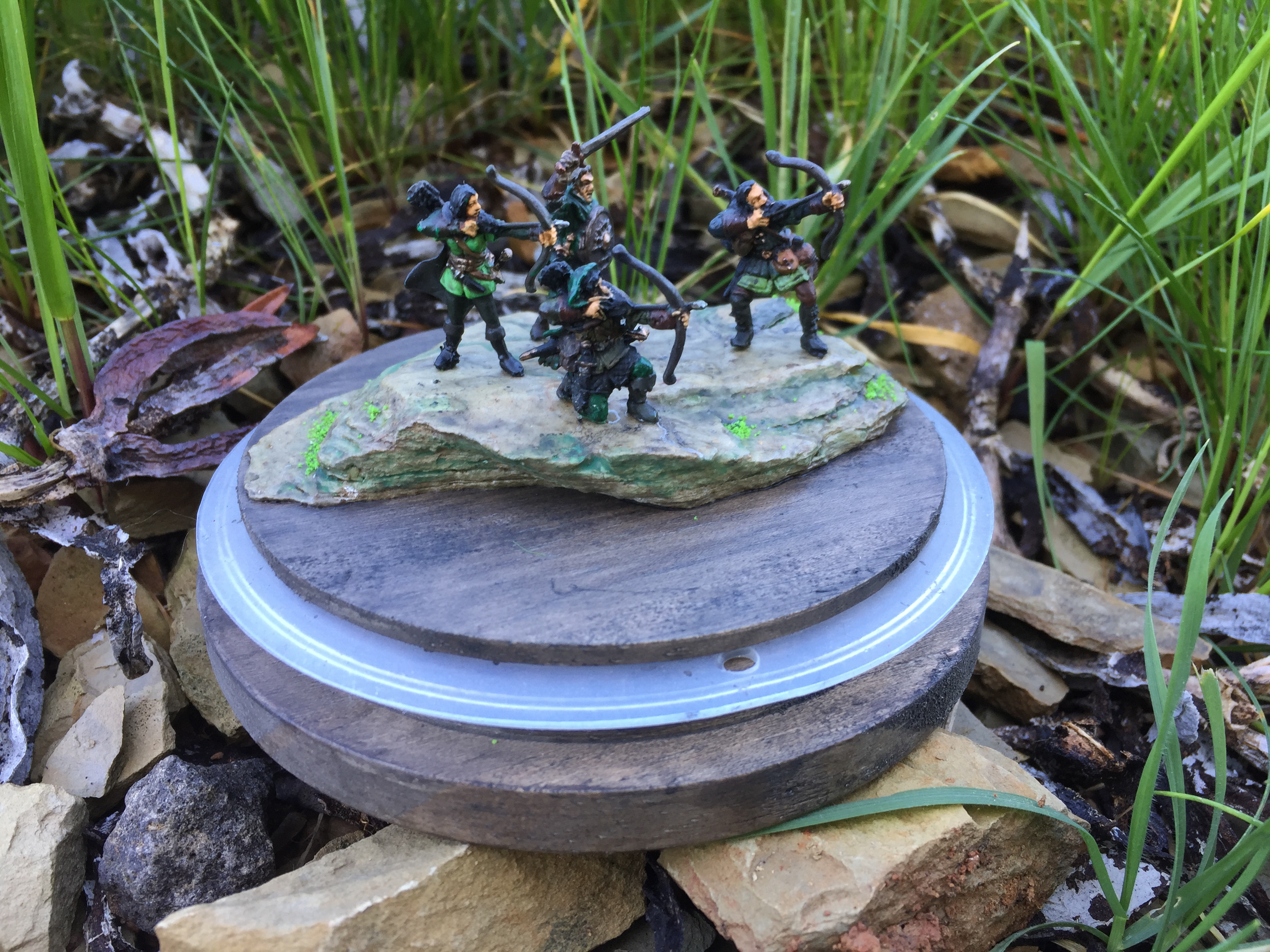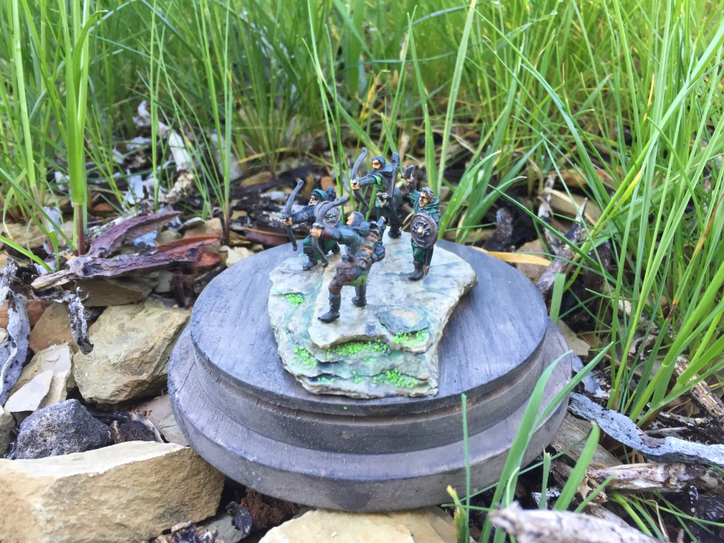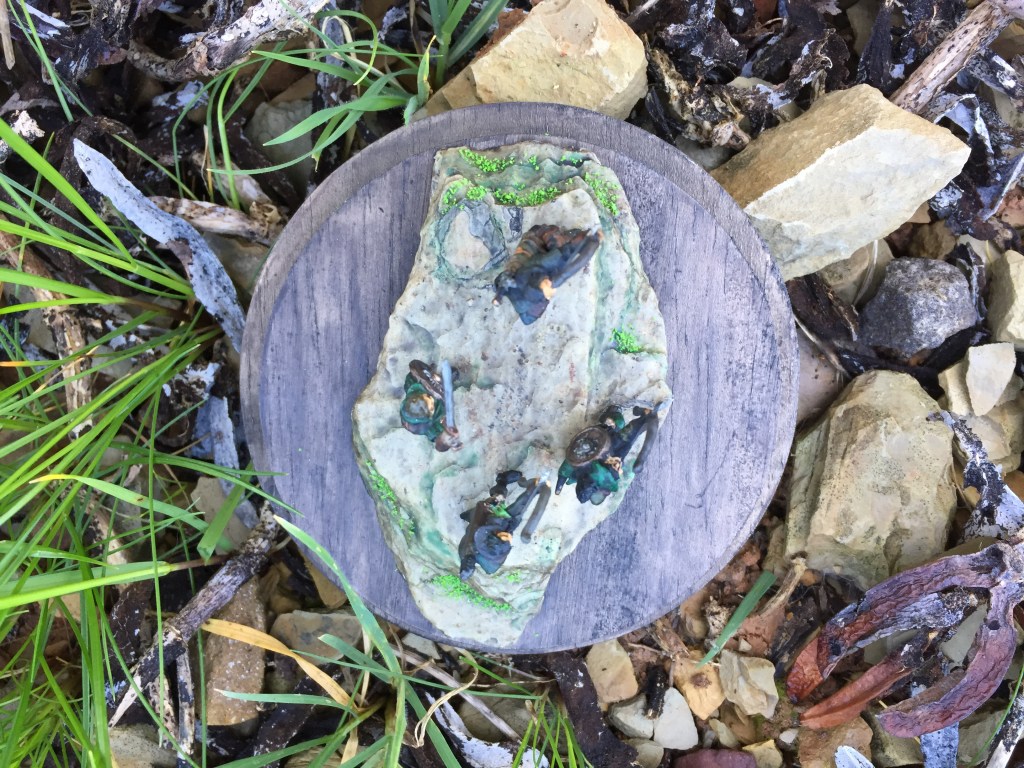 As I had lots of Elves left over I decided to stick some on the rock and added some green wash along with some fine bright green turf and there we have it!
