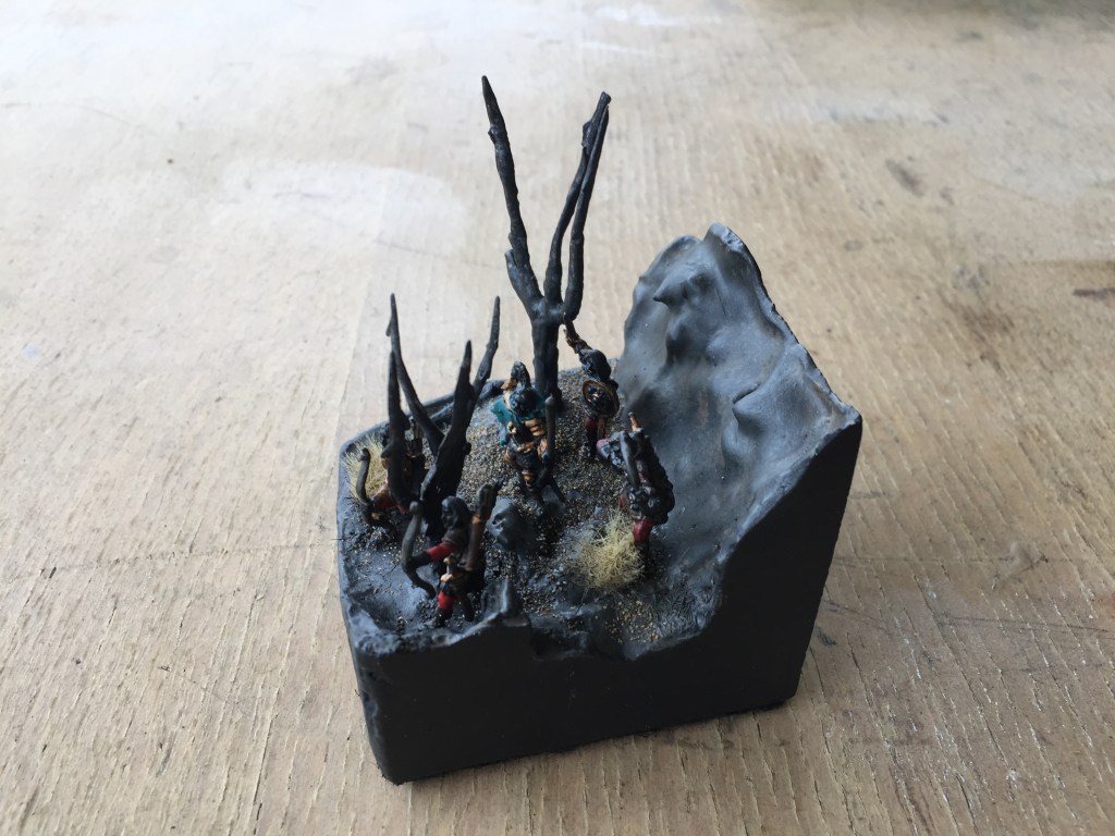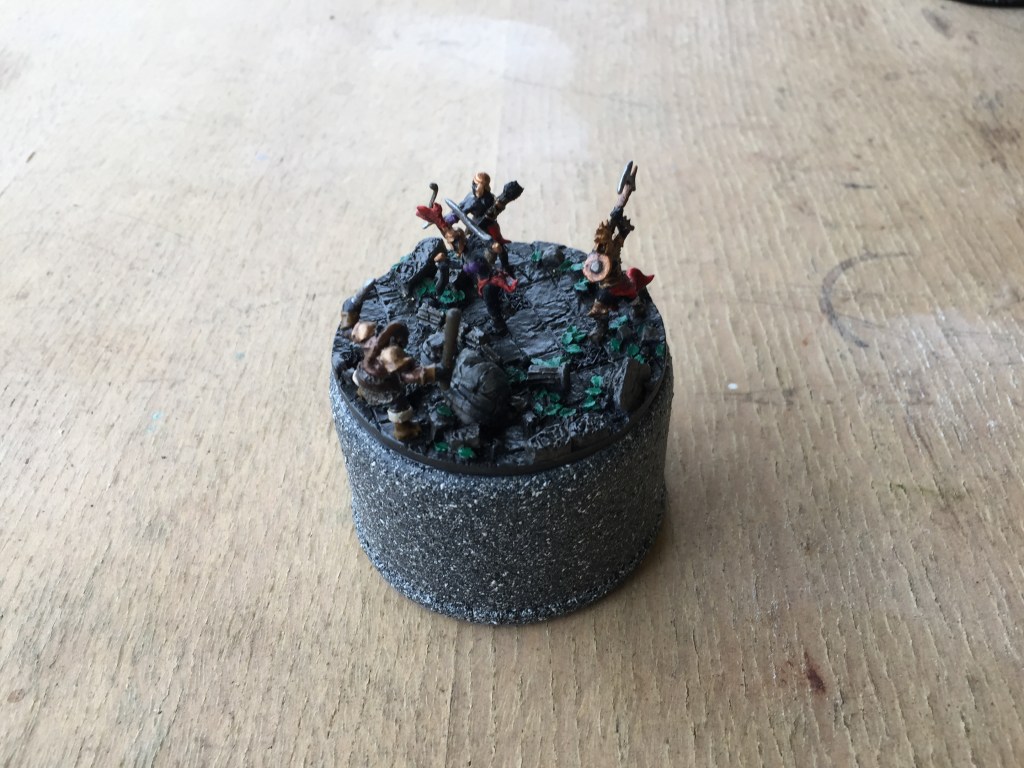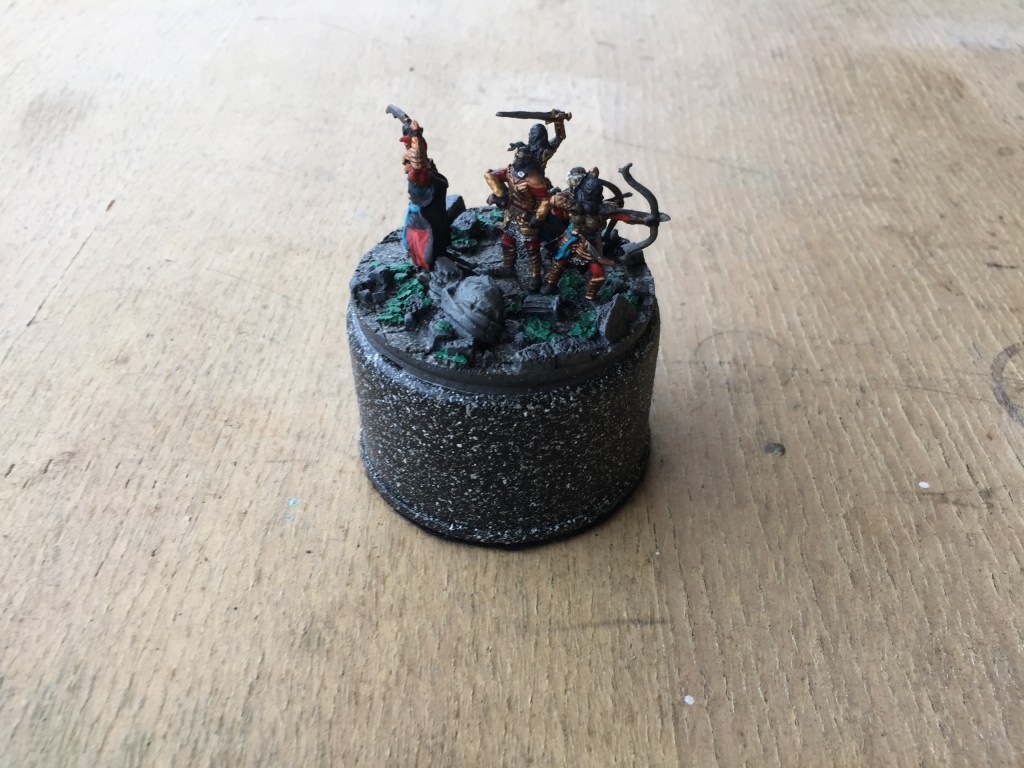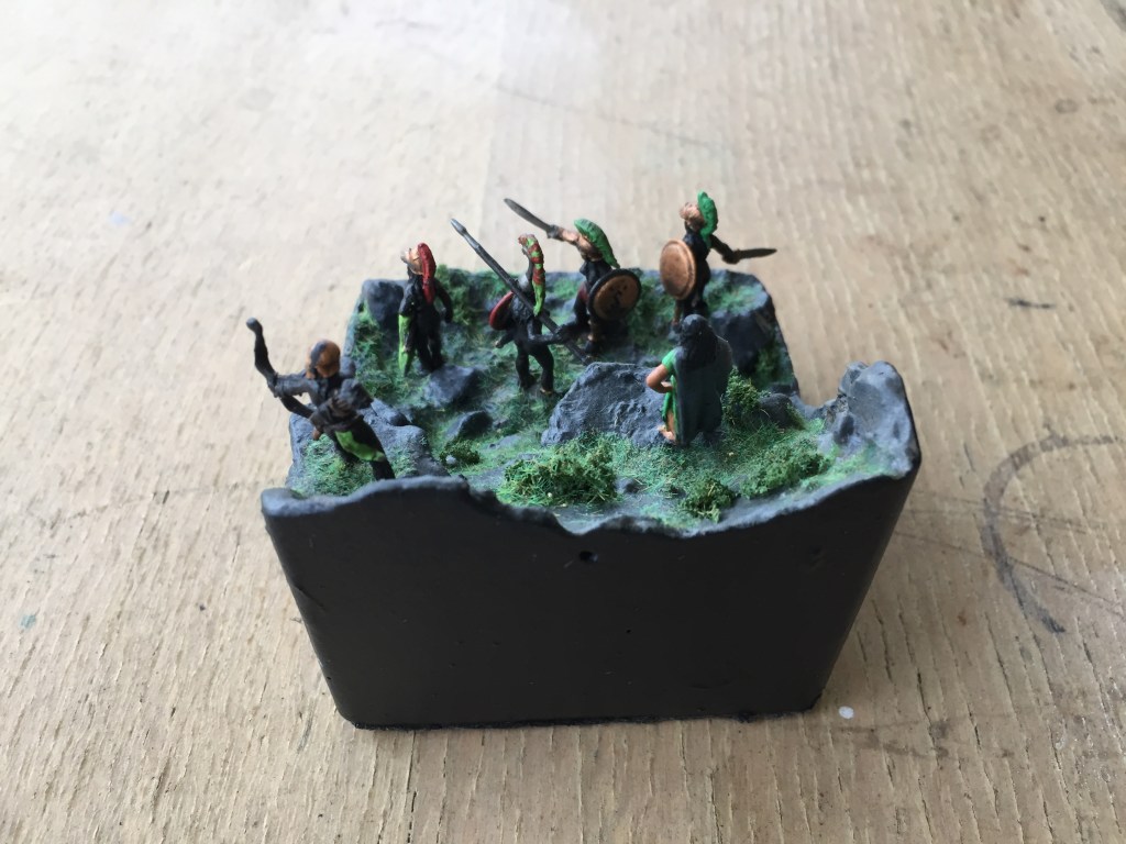 Well the secret I was looking for was how to make a similar base like the one Kuribo made for his knight, then I thought of using a small waxed cardboard milk carton with some plaster of pairs and a few pieces of shale from the garden, I felt it turned out OK for the small amount of effort I put in, just call me Mr Average! Ha Ha!