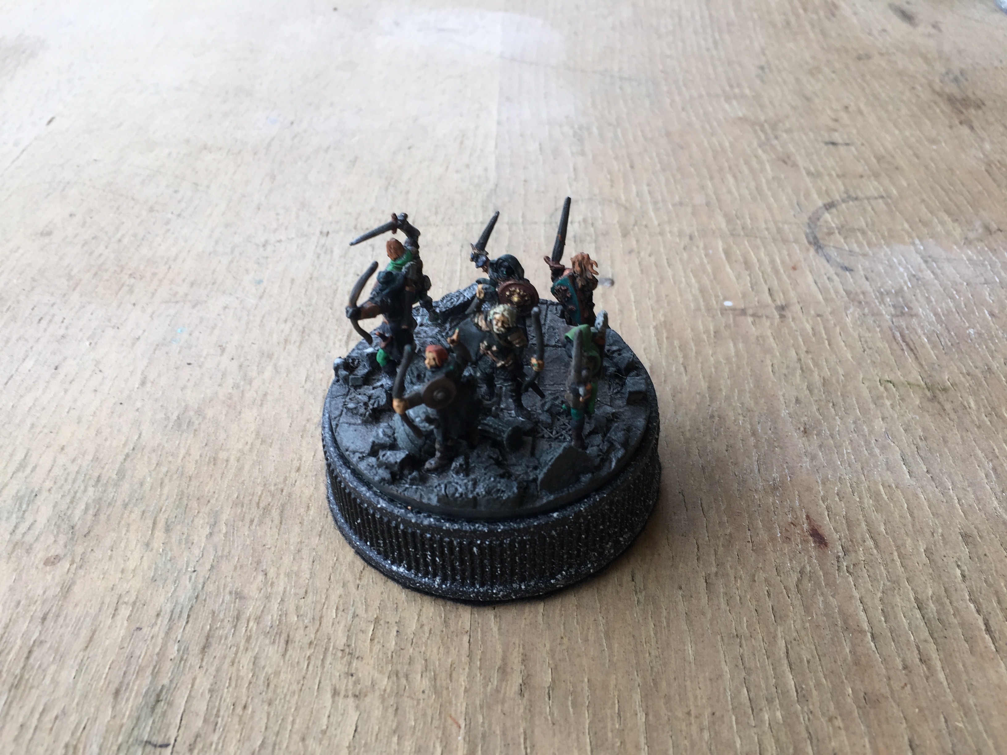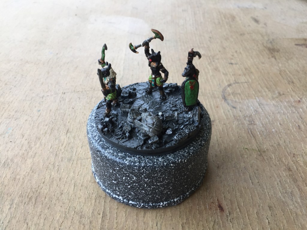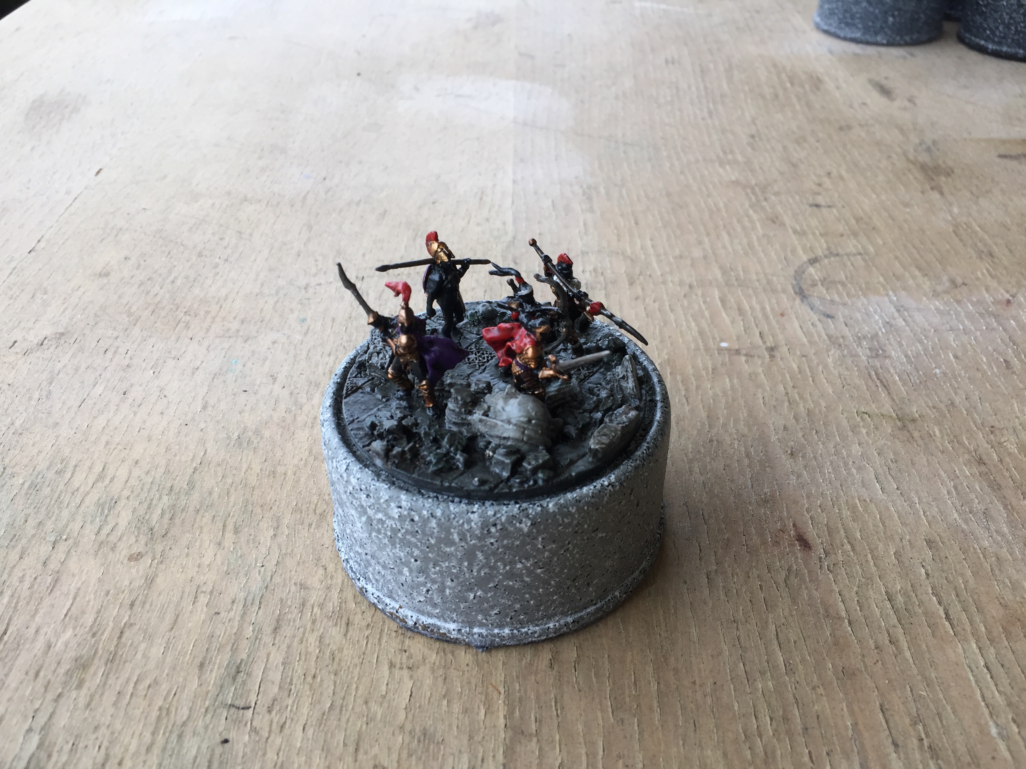 Well the secret I was looking for was how to make a similar base like the one Kuribo made for his knight, then I thought of using a small waxed cardboard milk carton with some plaster of pairs and a few pieces of shale from the garden, I felt it turned out OK for the small amount of effort I put in, just call me Mr Average! Ha Ha!