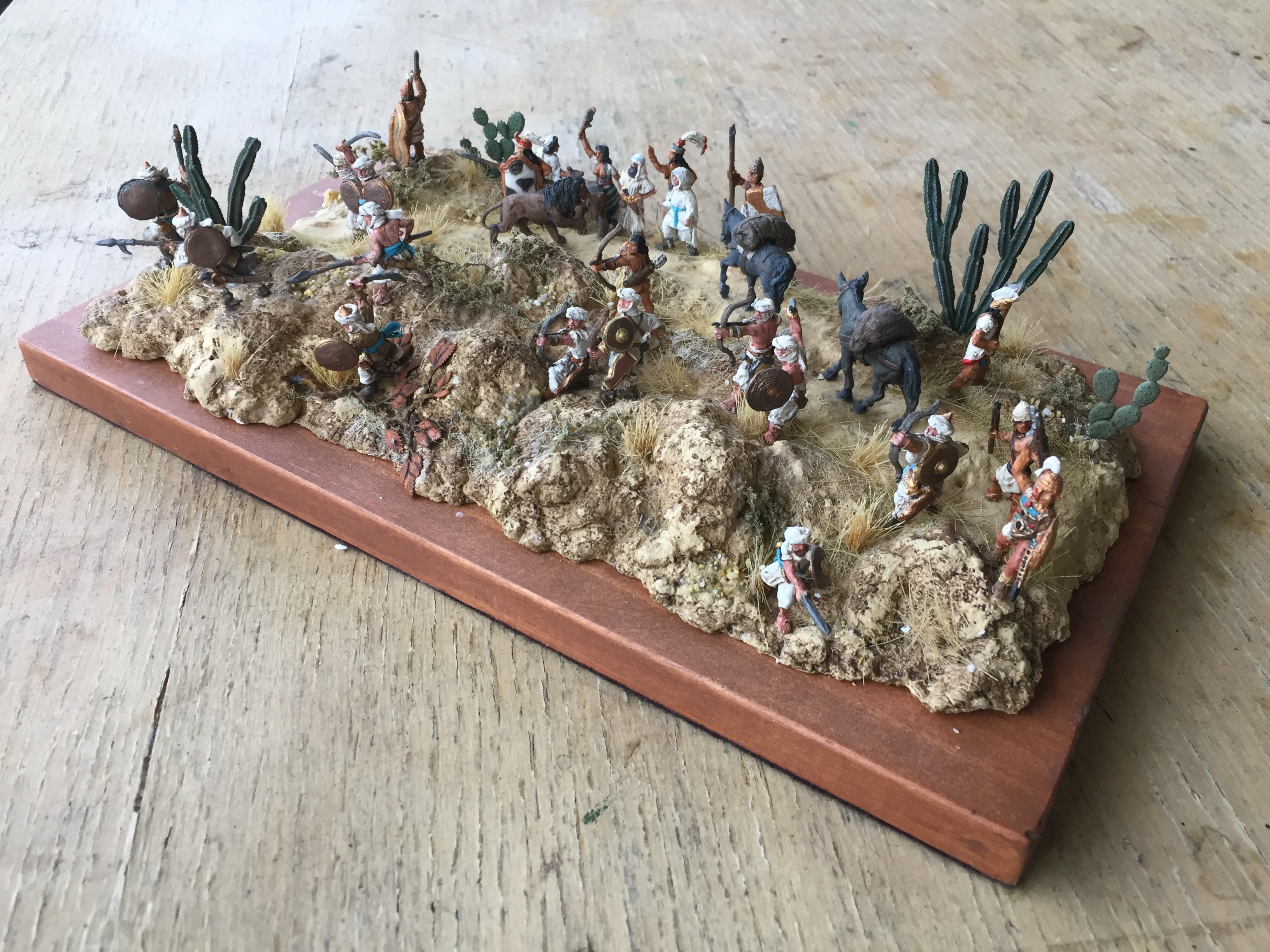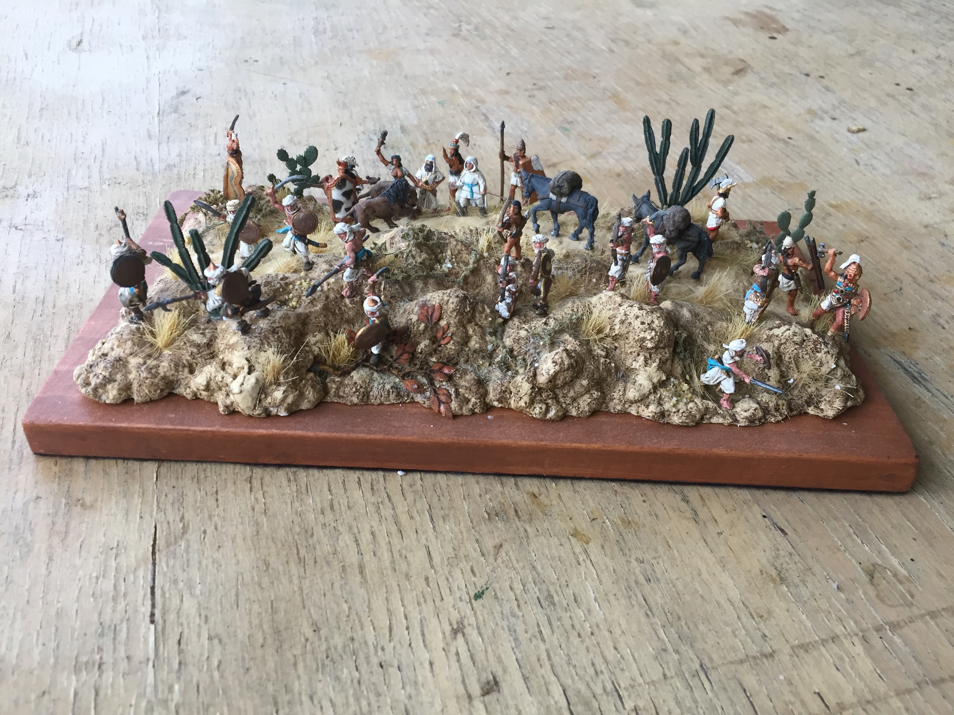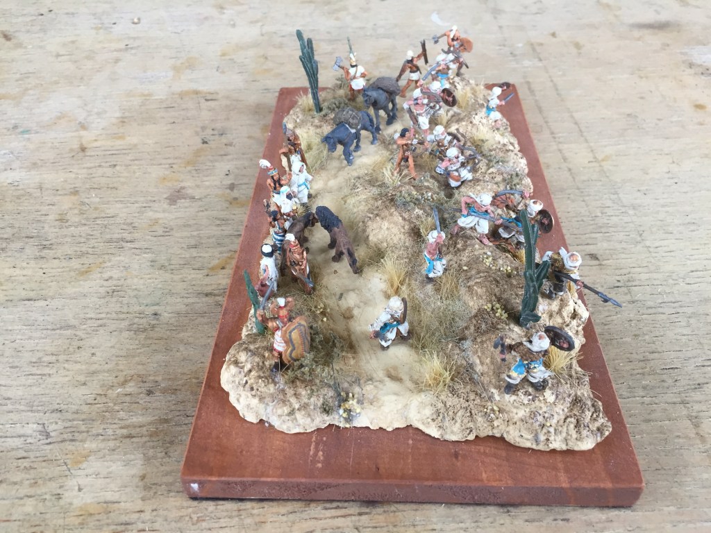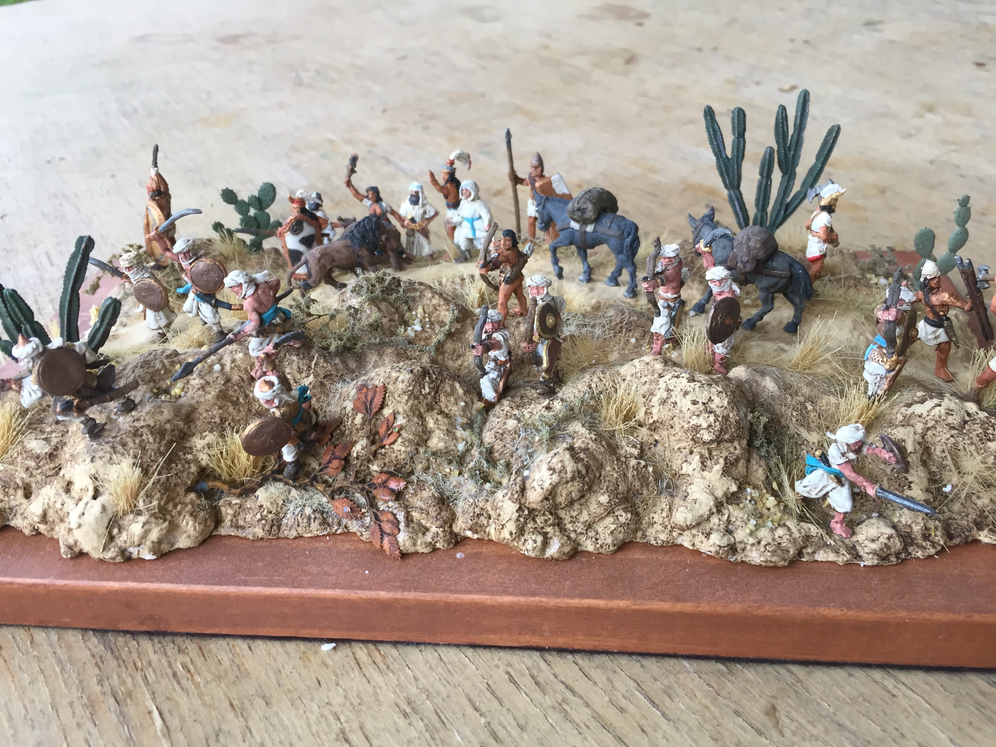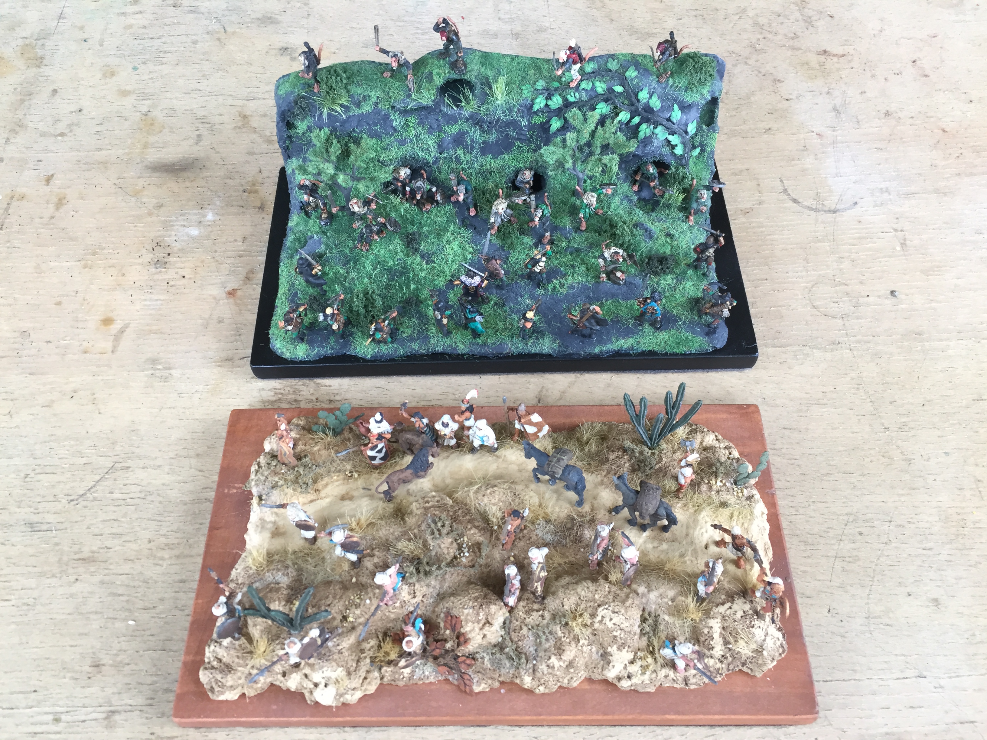 The desert scene one I made for one of my daughters for a Xmas present, fortunately she liked it!! The figures are mainly the Dark Alliance Nomads set with a few odd ones thrown in; I think the donkeys are from Linear-B.