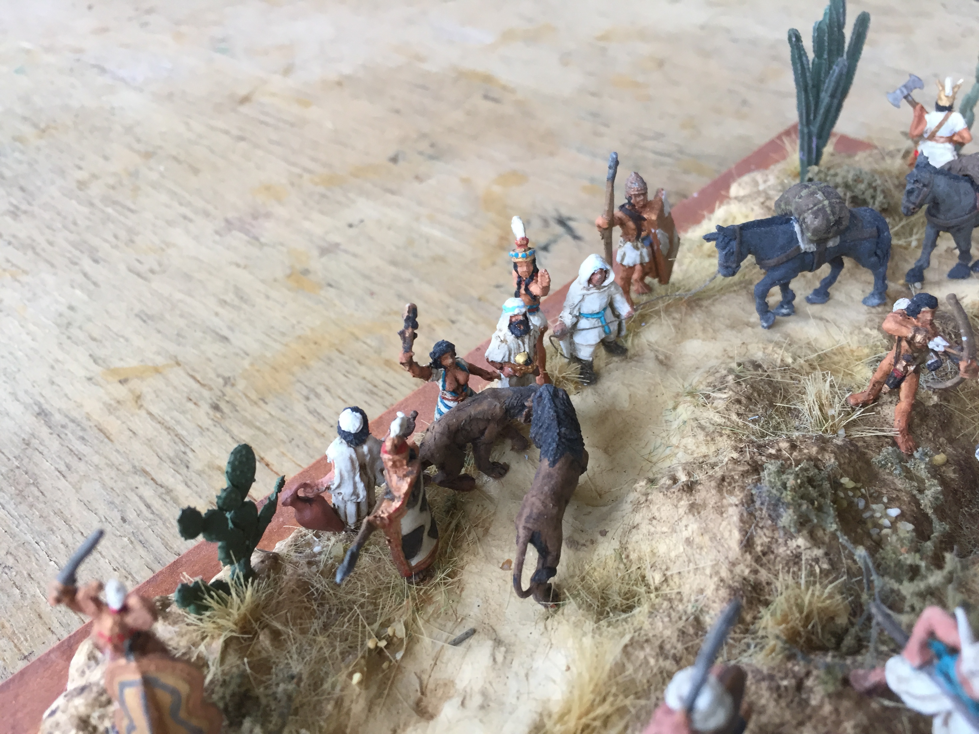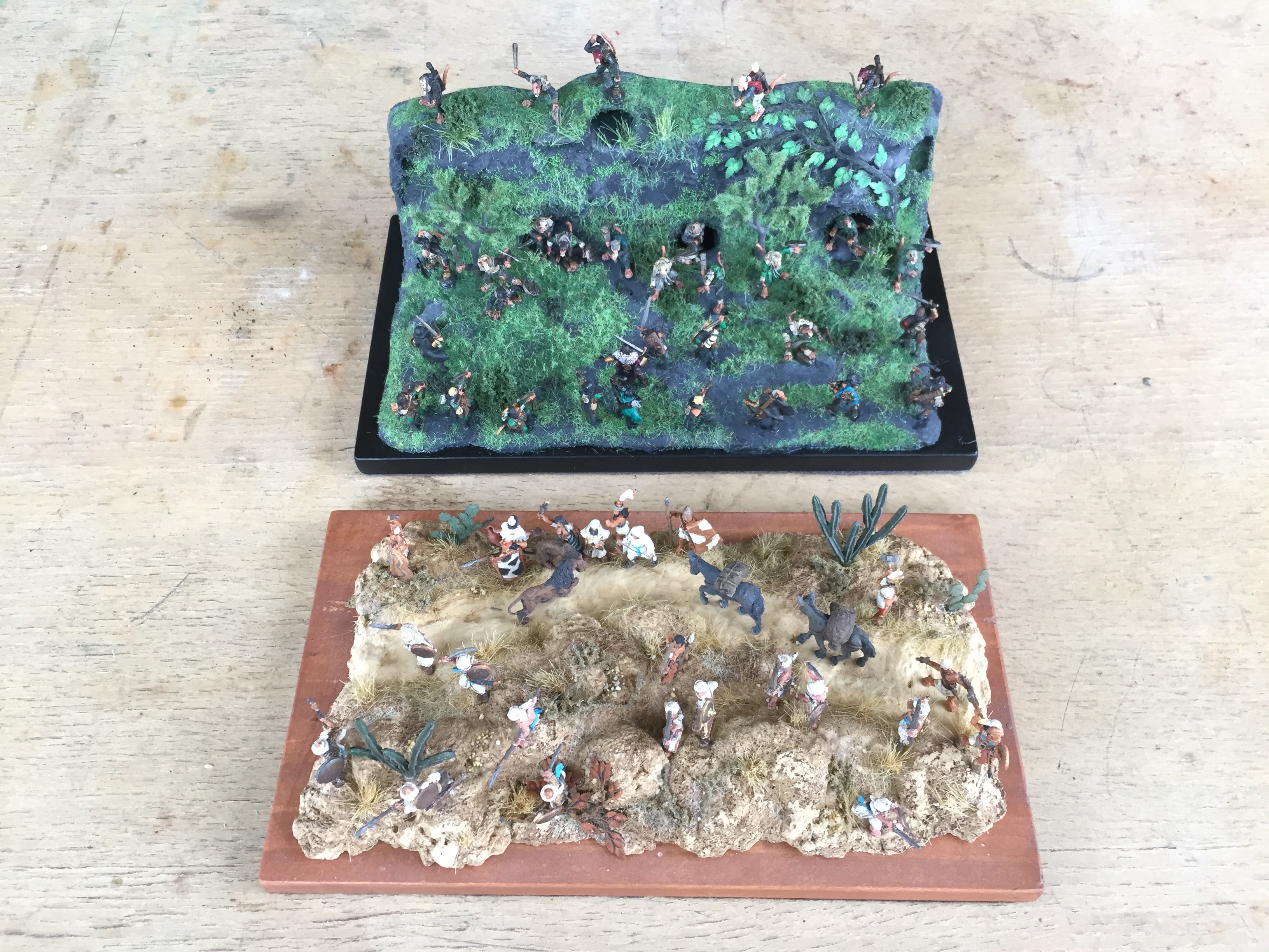 I also like the style you chose to paint them, while the wood-diorama has them more fitting into the scenery – as they are all sneaky, the dessert-one has nice contrast.