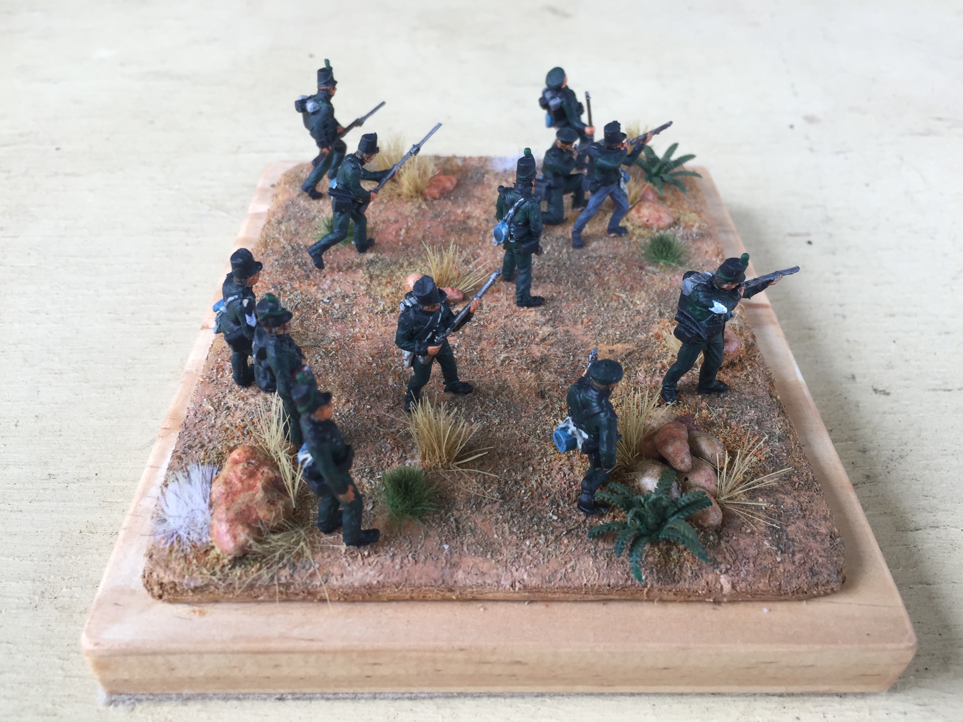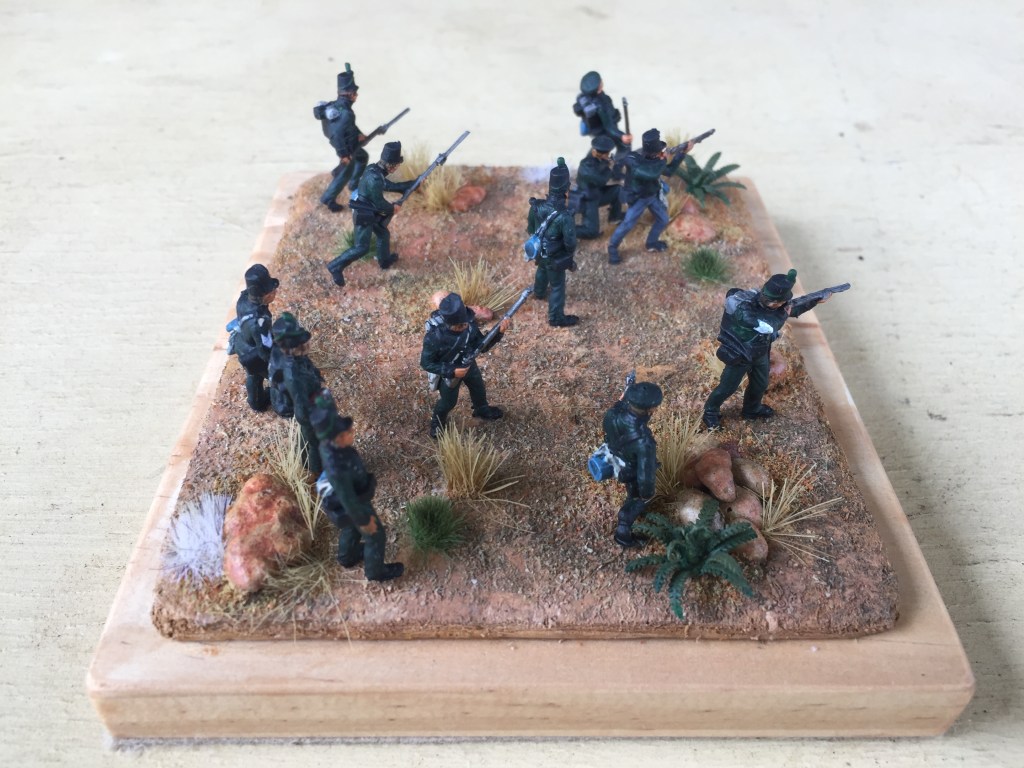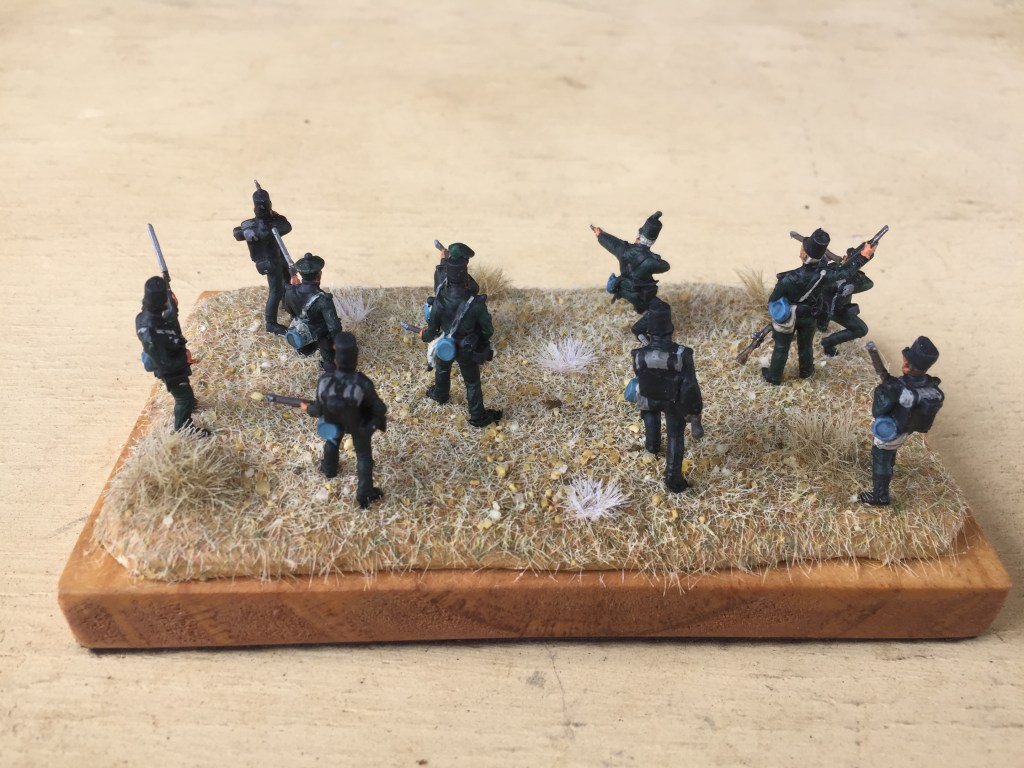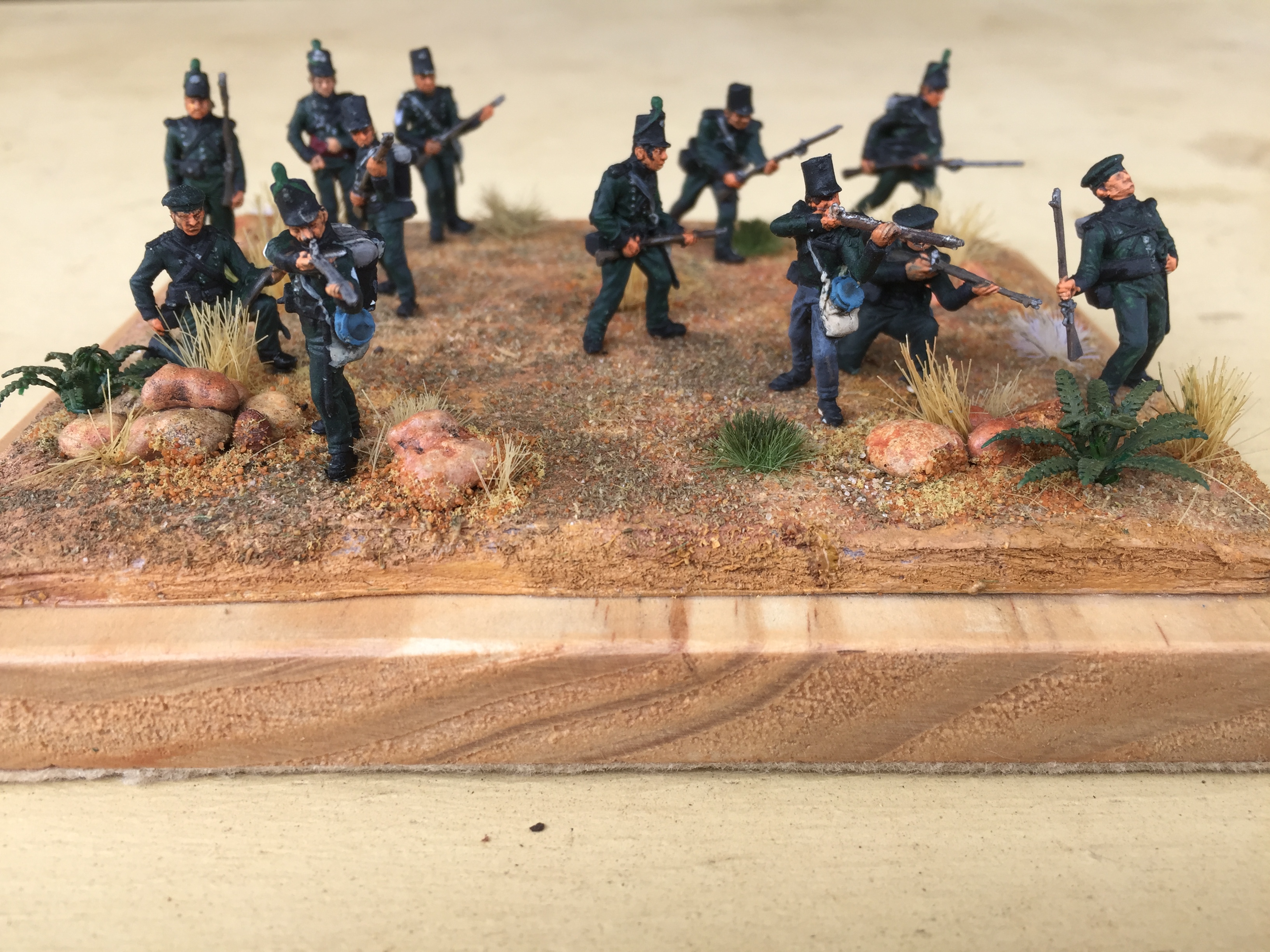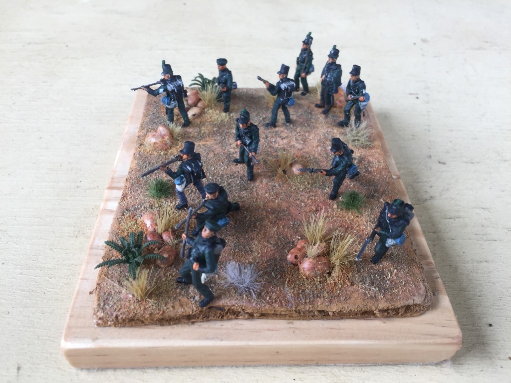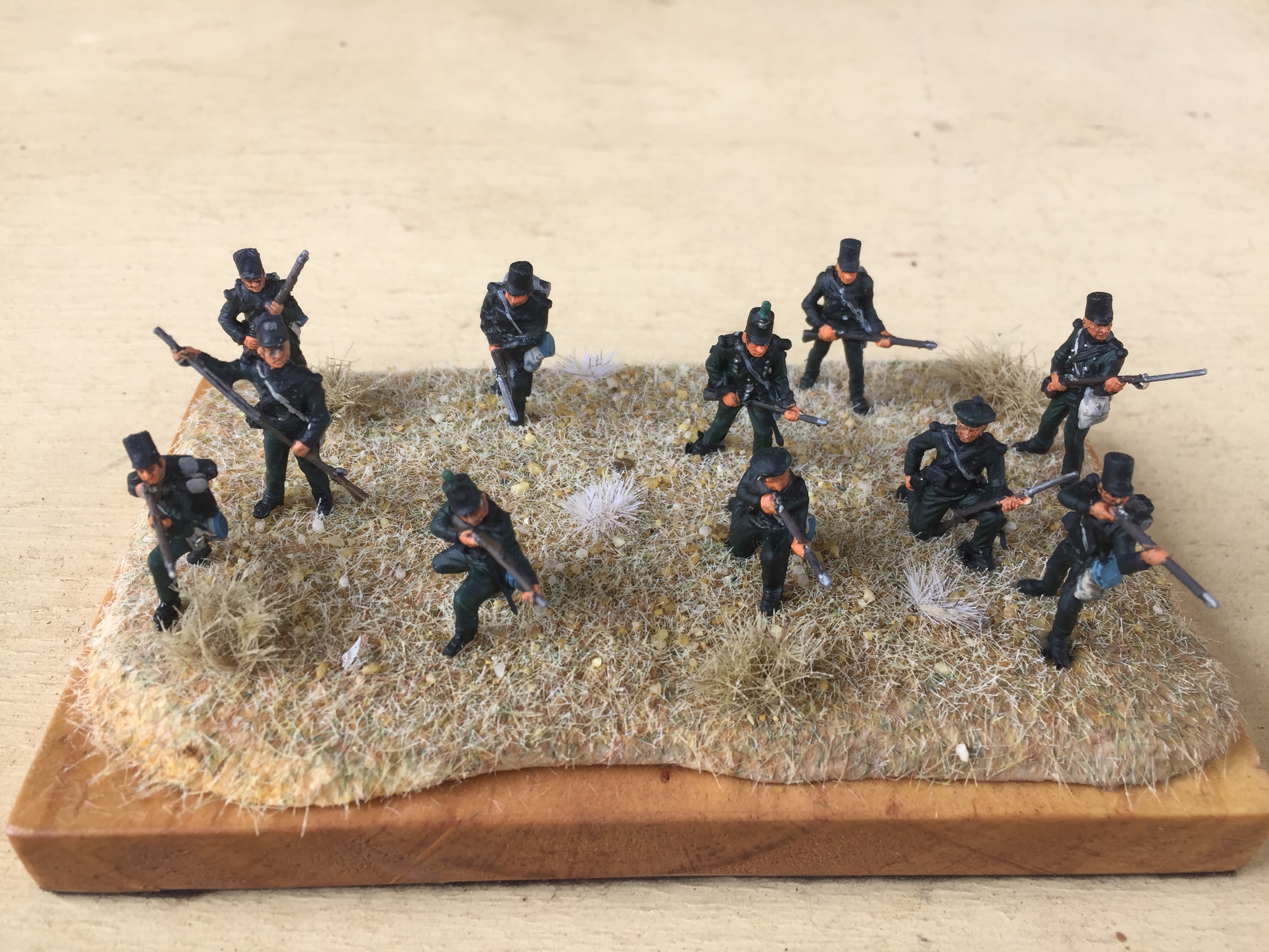 As most of you would know by now I’m a great fan of the 95th rifles back in Wellingtons day so I had to paint up some more, I have a feeling it was these guys that I opened my account with the blog about ten years back, the one my daughters cat walked over to my horror, amazingly missing every figure!