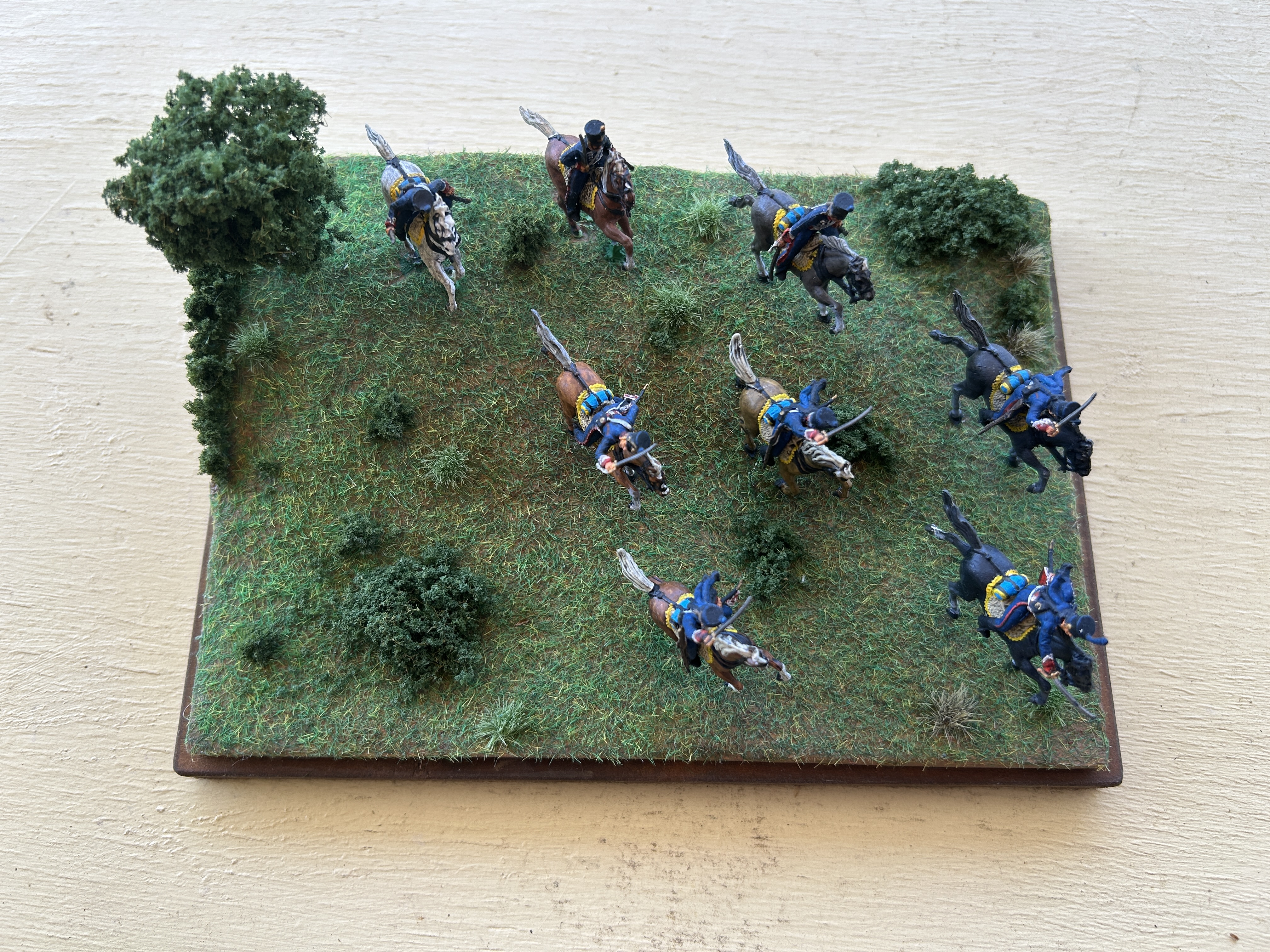 Well, this little one is of French Hussars from Italeri (6008). Iβm not sure why I purchased them, but it must have been when I was in my cavalry mood. Neat little guys and well sculptured, and I would recommend them if you wished some French light cavalry.